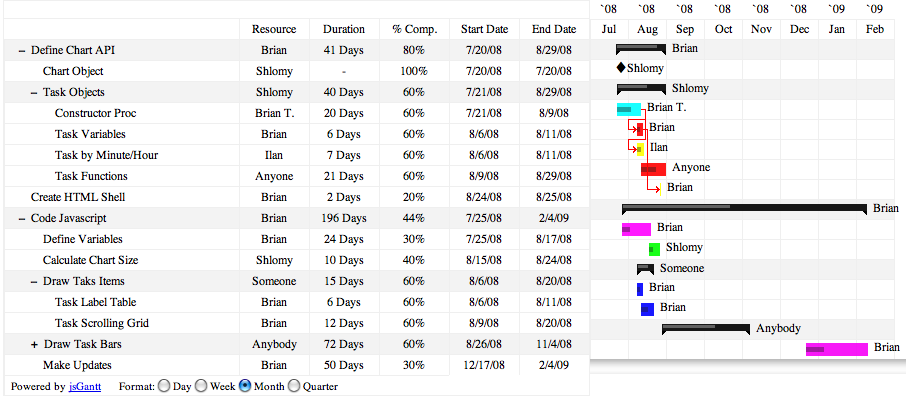 100% Free Javascript / CSS/ HTML Gantt chart control