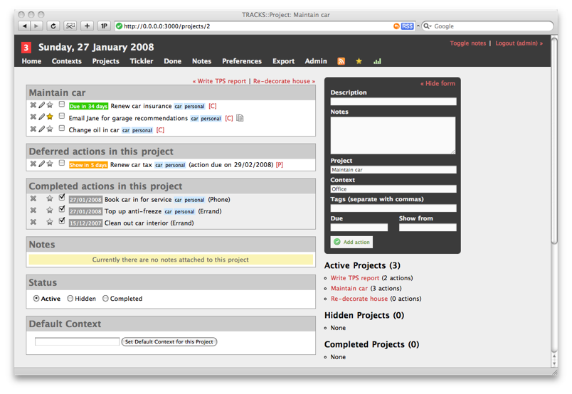 Inspiration Ruby on Rails Issue Tracking Application Tracks GTD